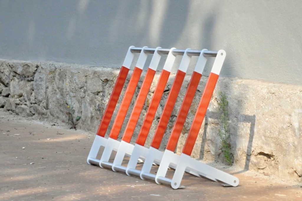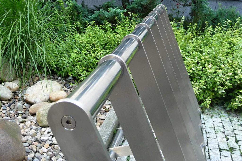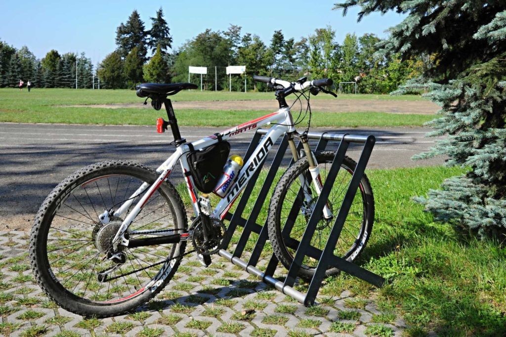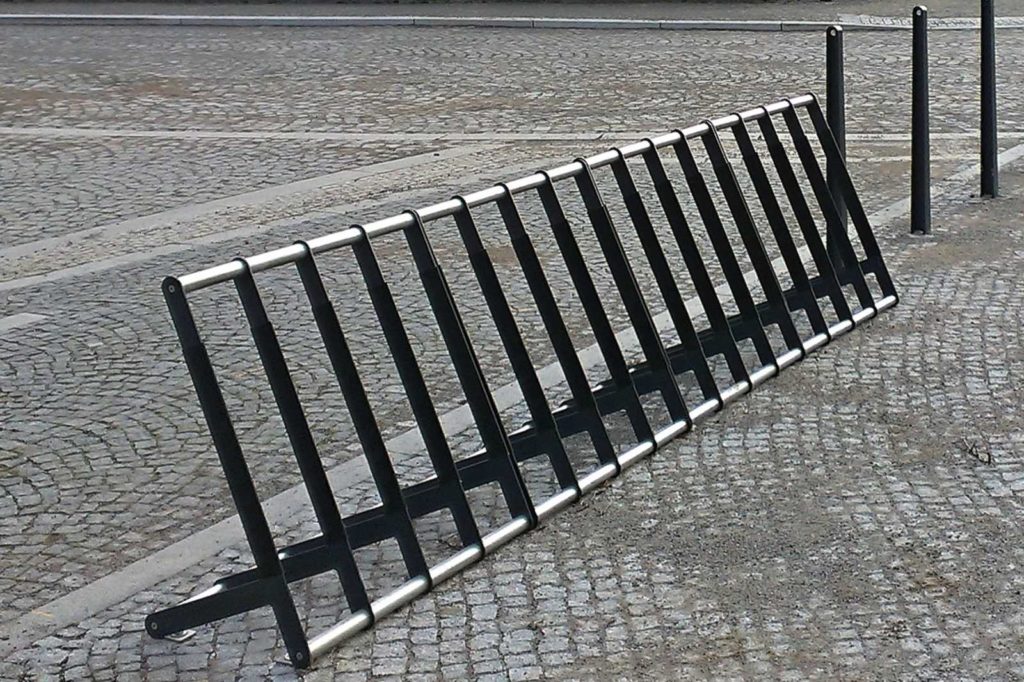 The hot-galvanized steel support structure can be treated with powder coating. The individual lamellas of the bicycle stand are connected through stainless steel tubes fixed with screw joints in one solid unit. There are rubber sleeves on the top part of the lamellas. At the bottom part there are welded four stainless steel plates with holes for possible anchoring to the base.