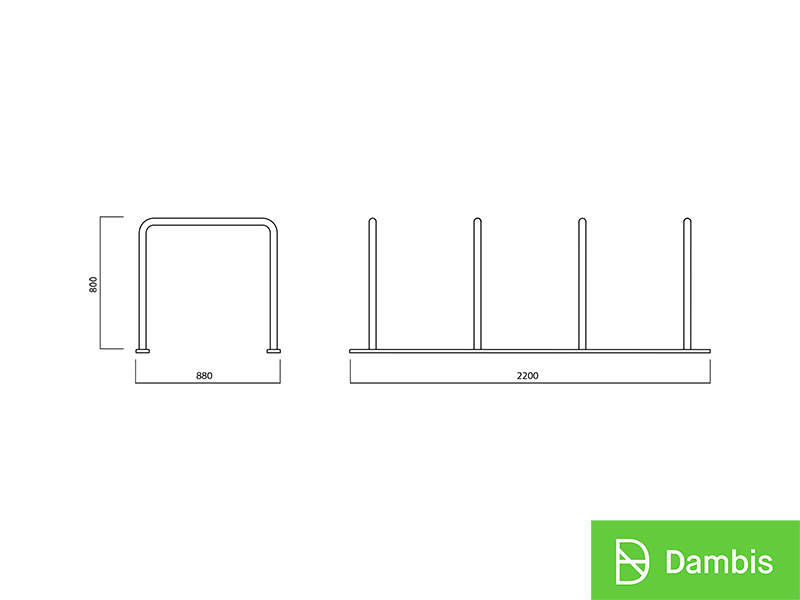 The Move bicycle rack is a classic solution in the Dambis product series. The minimalist and durable solution offers the possibility to attach the bicycle to the frame. Up to two bikes can be attached to one part of the bike holder. Two-, three- and four-part modules can be combined. In addition, it is possible to order a bike carrier with a 45-degree angle. This product is a popular choice for both indoor and outdoor conditions.