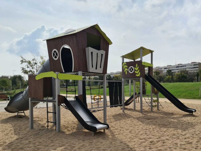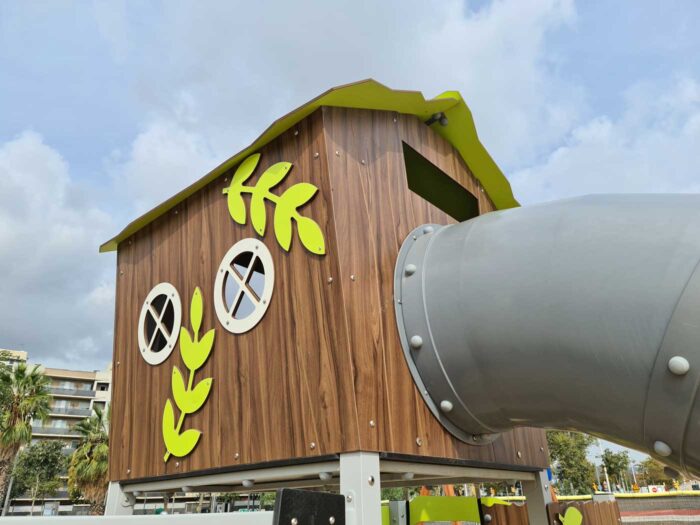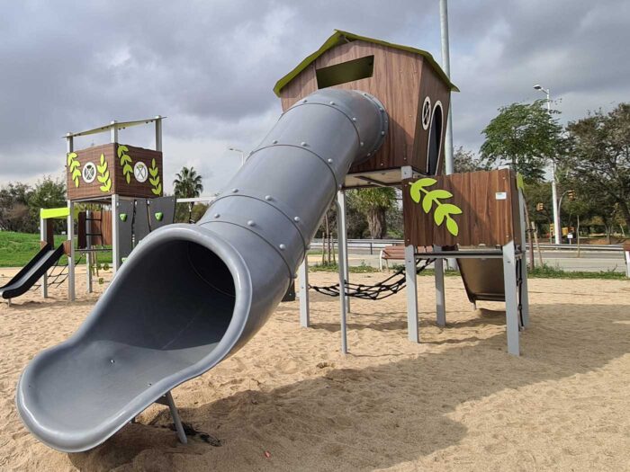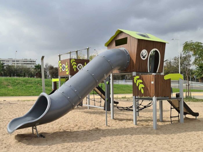 Bosco 4 is a big playground with several activities for the kids. It has slides, ladders, platforms, climbing nets and a tube slide. And on top of that, the playground looks just like several tree houses connected to each other.