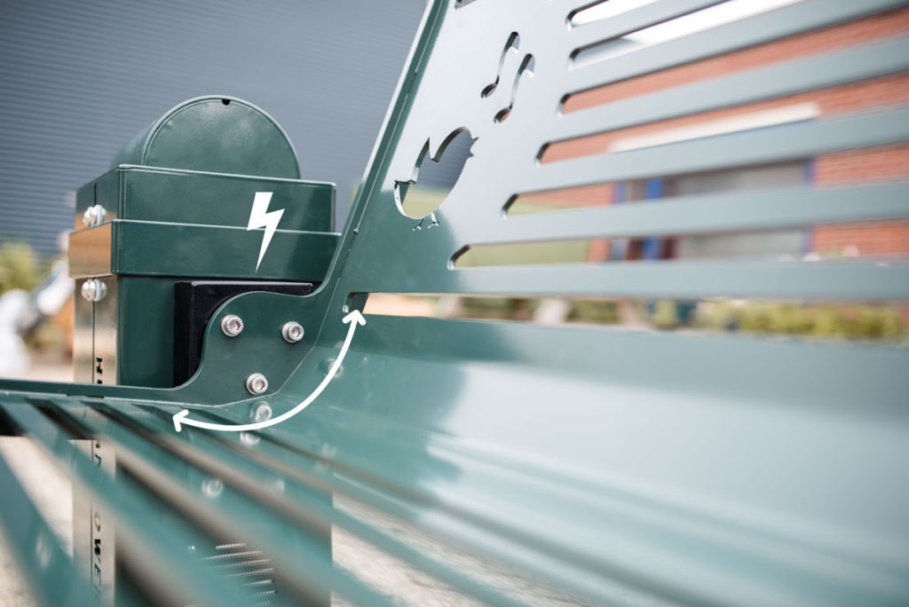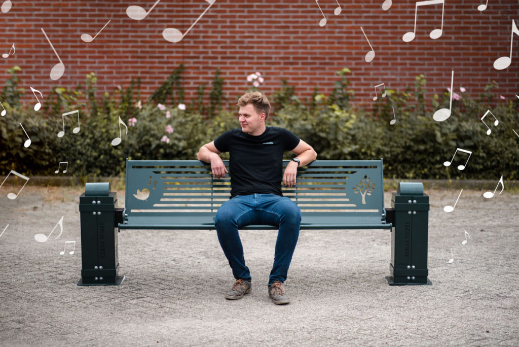 The AudioBench could also tell the story of your city or a piece of art, endless possibilities! Inside of the AudioBench there is a USB stick, volume knob and a switch to play the music in alphabetical order or random order. The USB stick holds all the music and sounds, by simply putting different .mp3 audio files on the stick, your AudioBench will start playing different sounds! It’s important to sometimes just sit down and relax!