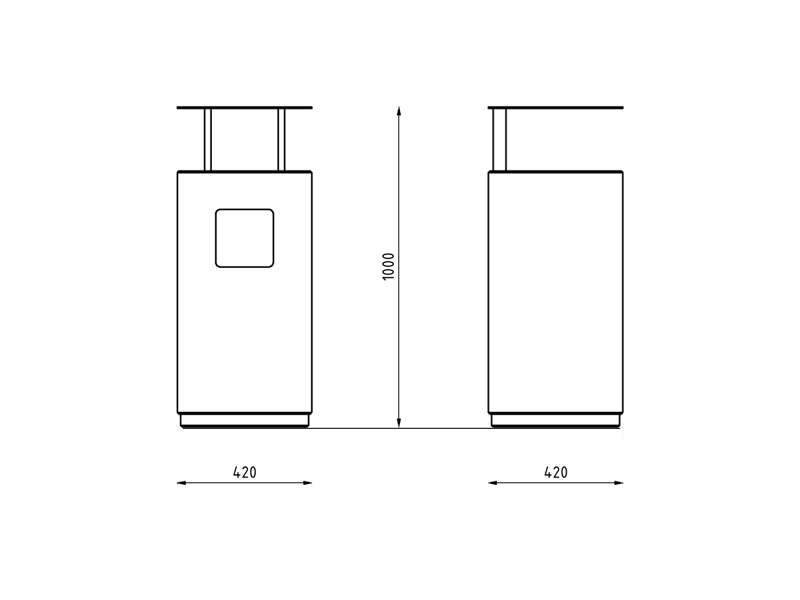 Concrete casted in the mould – class C30/37. The metal parts of the litter bin are galvanized and treated with powder coating. The inner removable galvanized container. The litter bin is not anchored. It uses its own weight.