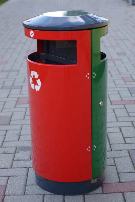 Dambis SOLO 75 is a practical and versatile litter bin that is divided in two in the middle, allowing for easy waste sorting. The bin halves can be customized as needed, be it general waste and glass, paper and plastic, bio-waste and packaging, or other suitable combinations. Several trash cans can be used to create efficient waste collection stations, contributing to environmentally friendly waste management.