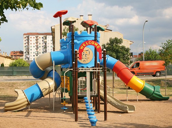 Modus XL is is a colourful playground full of different attractions. It has various slides, stairs and platforms.