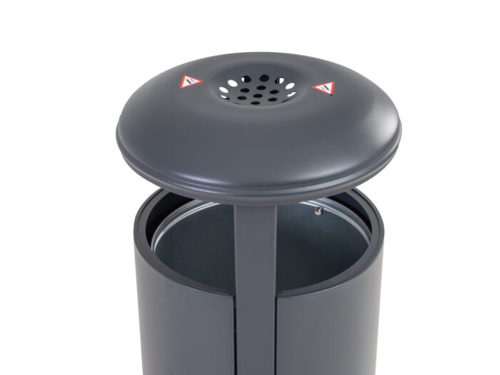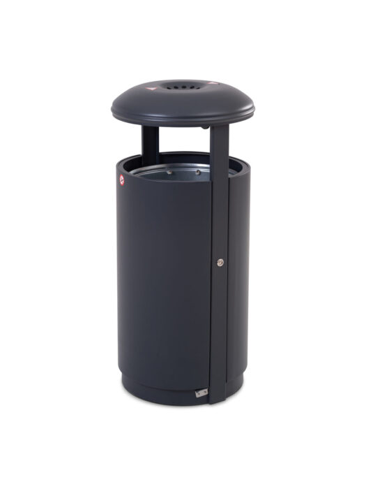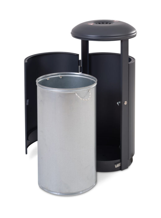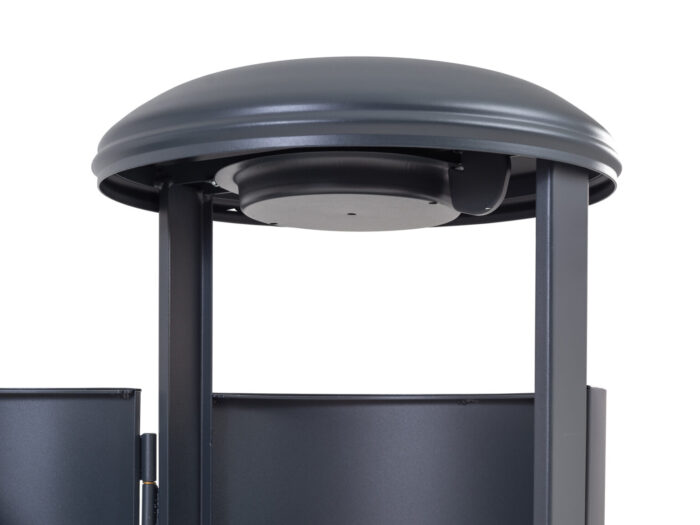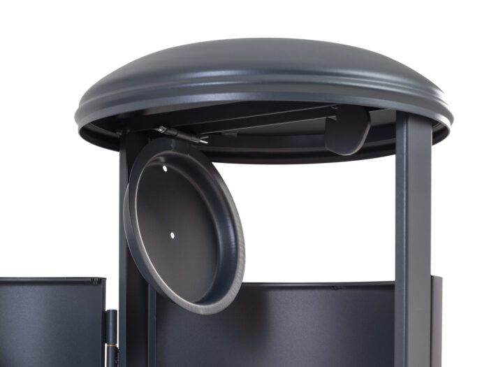 Litter bin Dambis Solo 150 is a practical and solid 150-liter litter bin with an ashtray in the upper part and a waste container in the lower part. The ease of emptying is improved by the large volume of the model and the door that can be locked with a spring lock. An innovative and convenient added bonus is the cover that conducts rainwater.