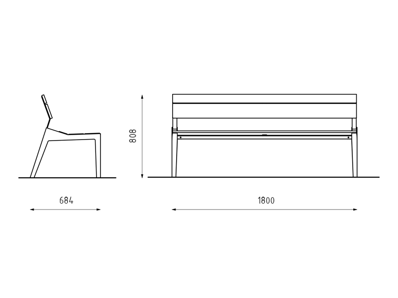 The supporting structure made of galvanized steel is treated with powder coating. A seat and backrest are consisted of solid wooden boards attached to the supporting structure or grid made from steel profiles or poles with stainless screws. There are four legs for anchoring to the base.