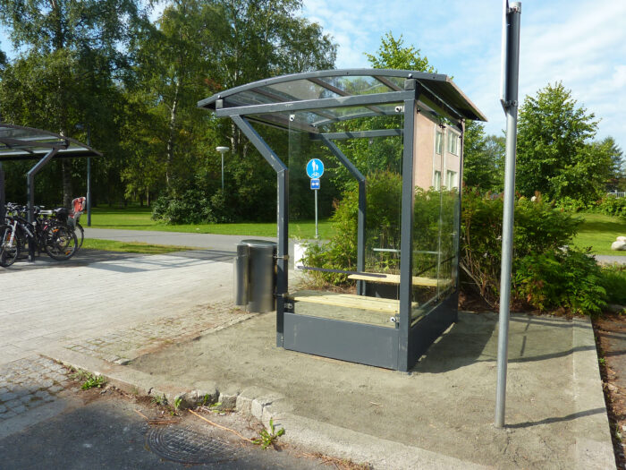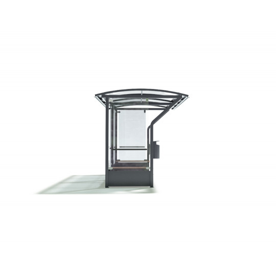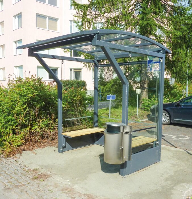 The Vario waiting pavilion-shelter can be connected one after the other to form a larger whole. Vario canopies have a steel frame and a polycarbonate or aluminum roof. The roof is surface-treated with zinc primer and powder-polished paint. Gutters and leaves are made of aluminum. The Vario awning is also suitable for intermediate, stop or station awnings.