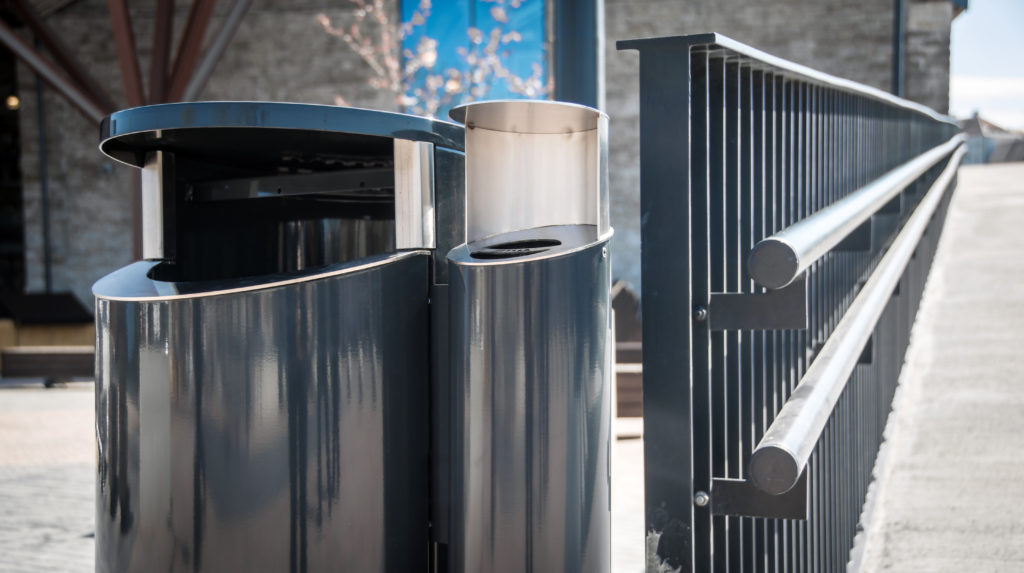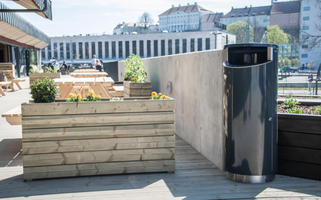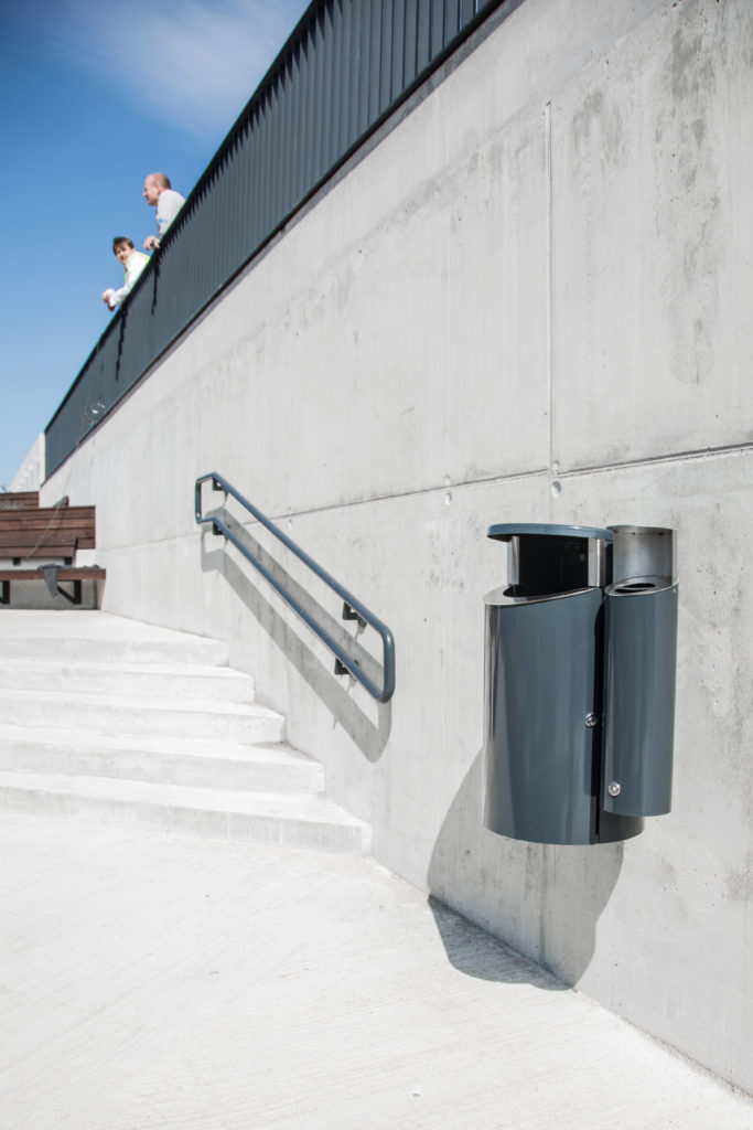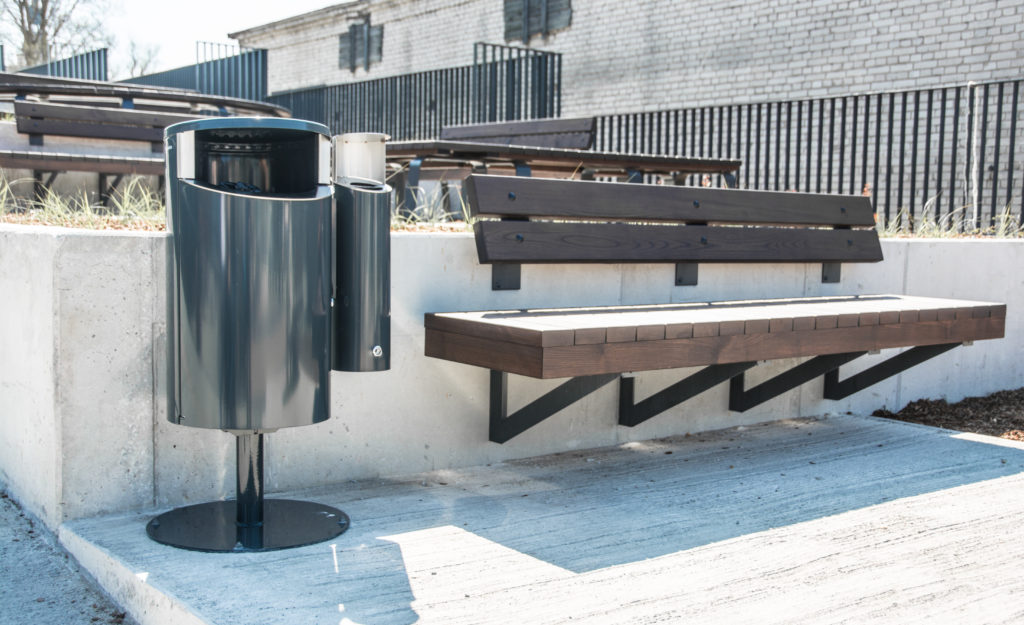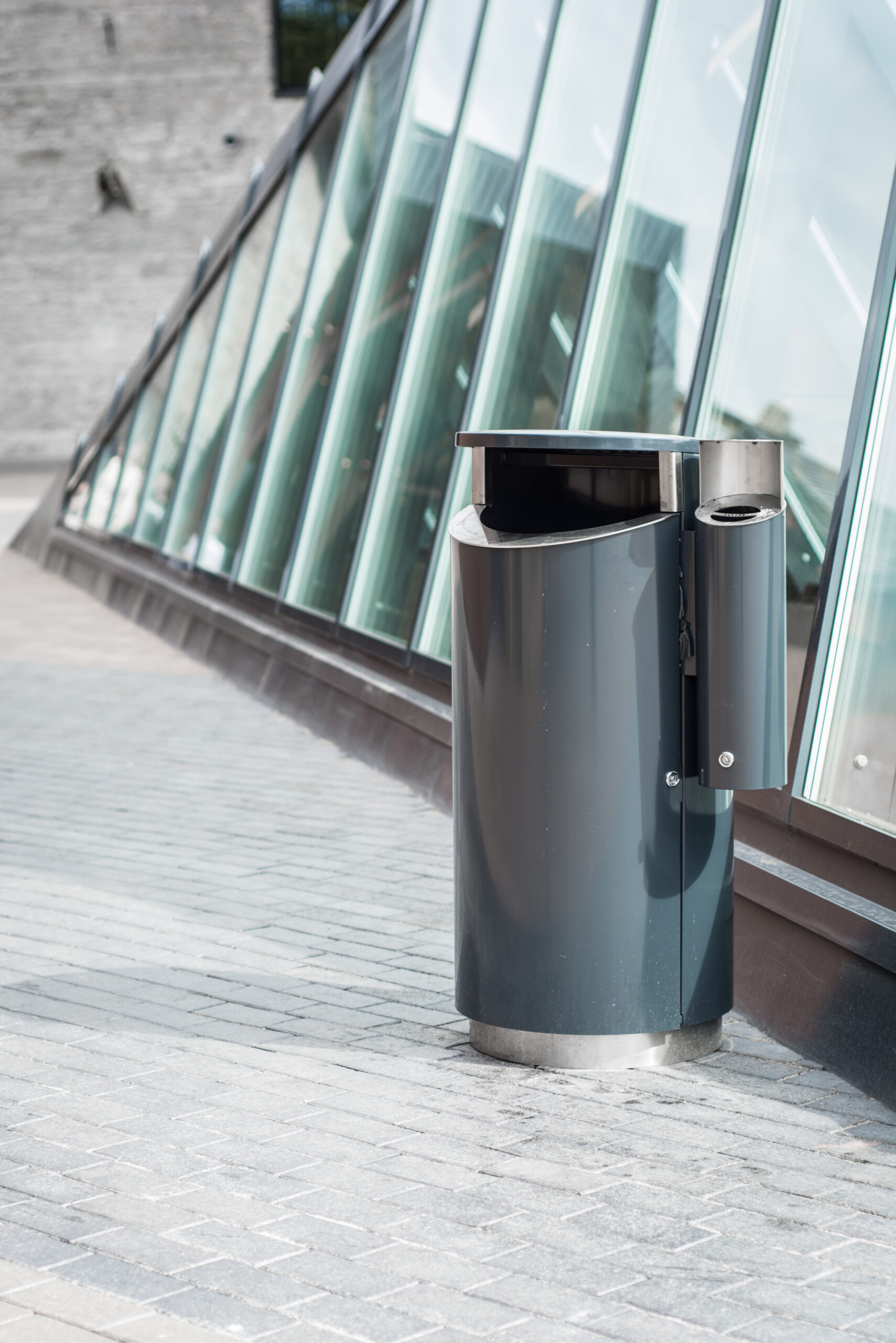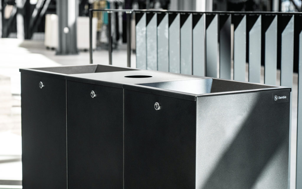 Balti Jaam Market, reopened and renovated in 2017, was equipped with Dambis indoor and outdoor litter bins. Novus series outdoor litter bin and Edge series sortable indoor litter bins were selected in this project. In this project, you will find a wide selection of different outdoor litter bin, both with a free-standing concrete base and with a metal base fixed in the ground with anchor bolts. Specially produced powder paint adds uniqueness and personality, and stickers added to the bins simplify sorting.