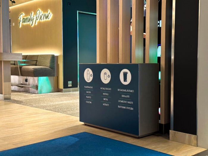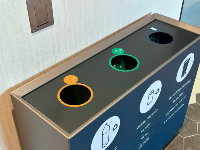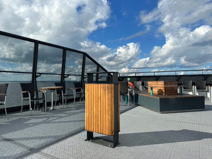 At MyStar’s Sun Deck, you can find Dambis litter bins STADIUM. At the seating areas, STADIUM has been chosen with a soft wood exterior finish, and in the smoking area, the trash can has been chosen as a more robust option with a completely powder-coated finish. Among the passenger areas of MyStar, you can find several ZELL sorting trash cans, which with their clean design beautifully complement the interior design of the ship.