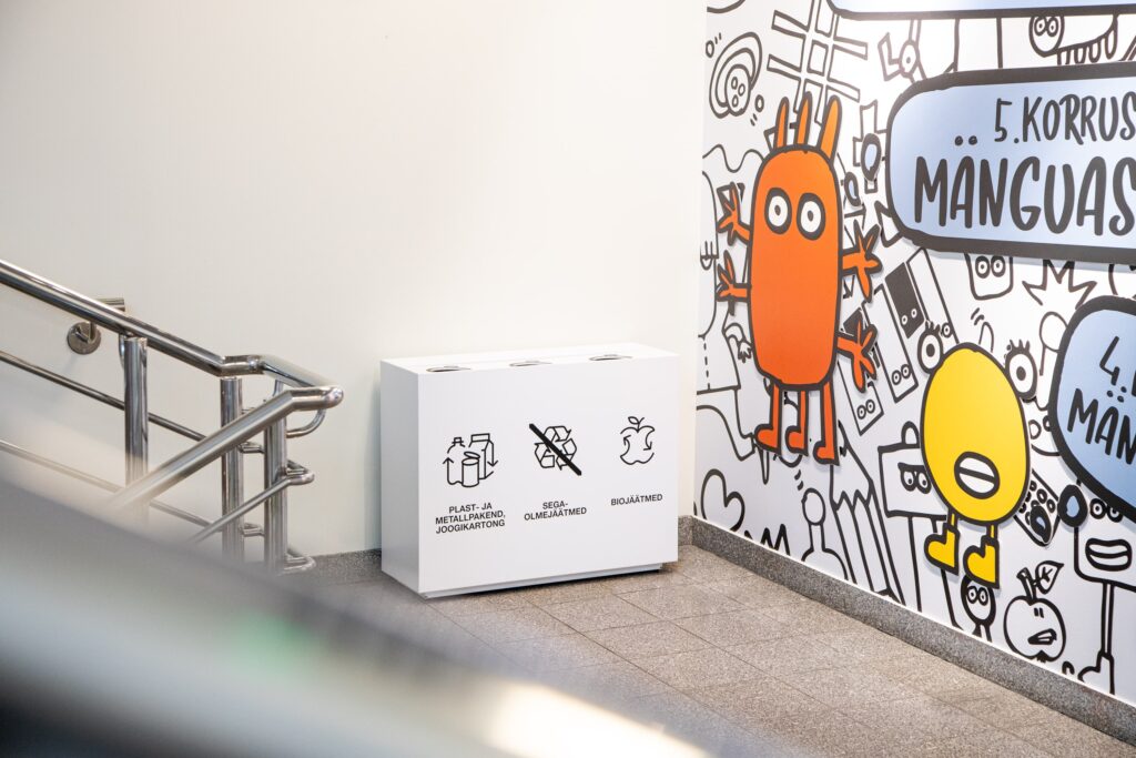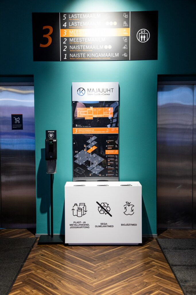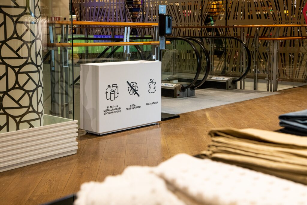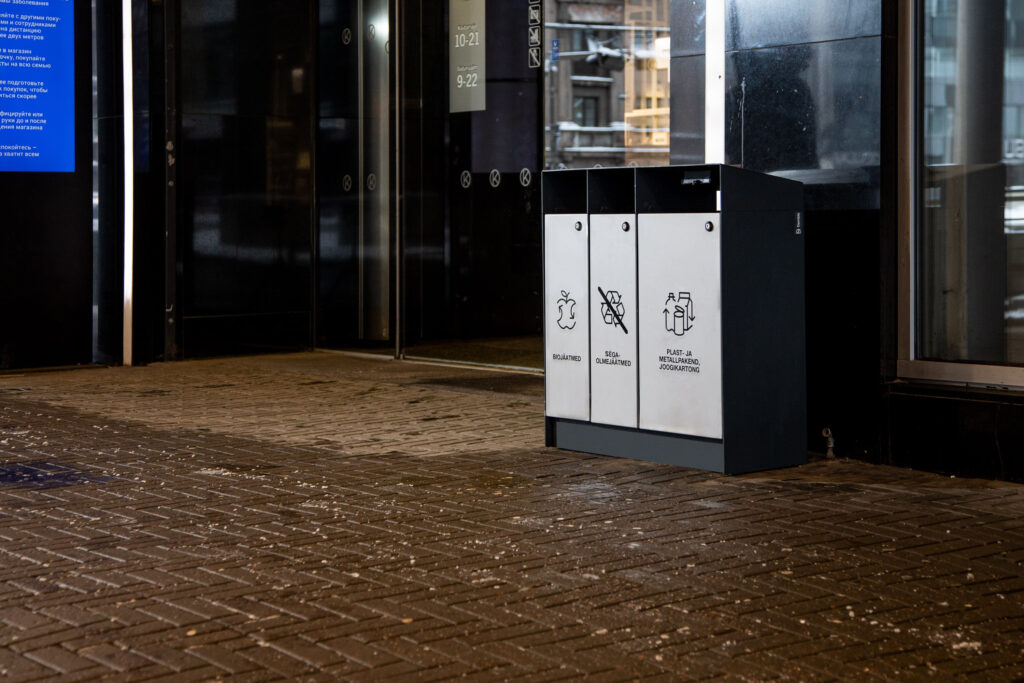 Tallinna Kaubamaja has made a positive contribution to the environment by encouraging people to sort waste. We are glad to say that they have chosen Raila, a weatherproof outdoor litter bin, and Zell, a beautiful indoor litter bin, from our product portfolio. The bins are comfortably positioned near entrance and exit doors as well as the stairs and escalators. There are stickers and labels to assist people in sorting waste and recycling, resulting in a high-quality and convenient user experience.