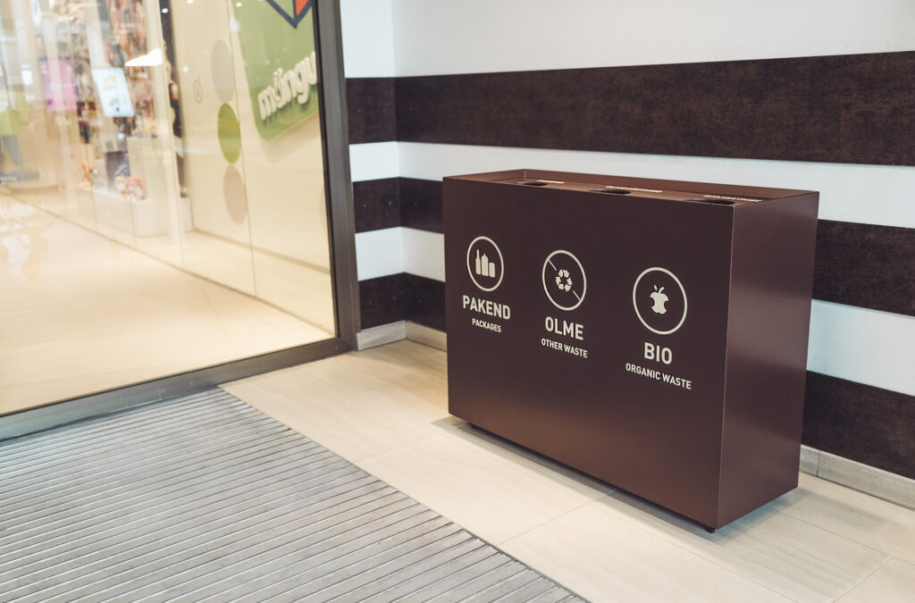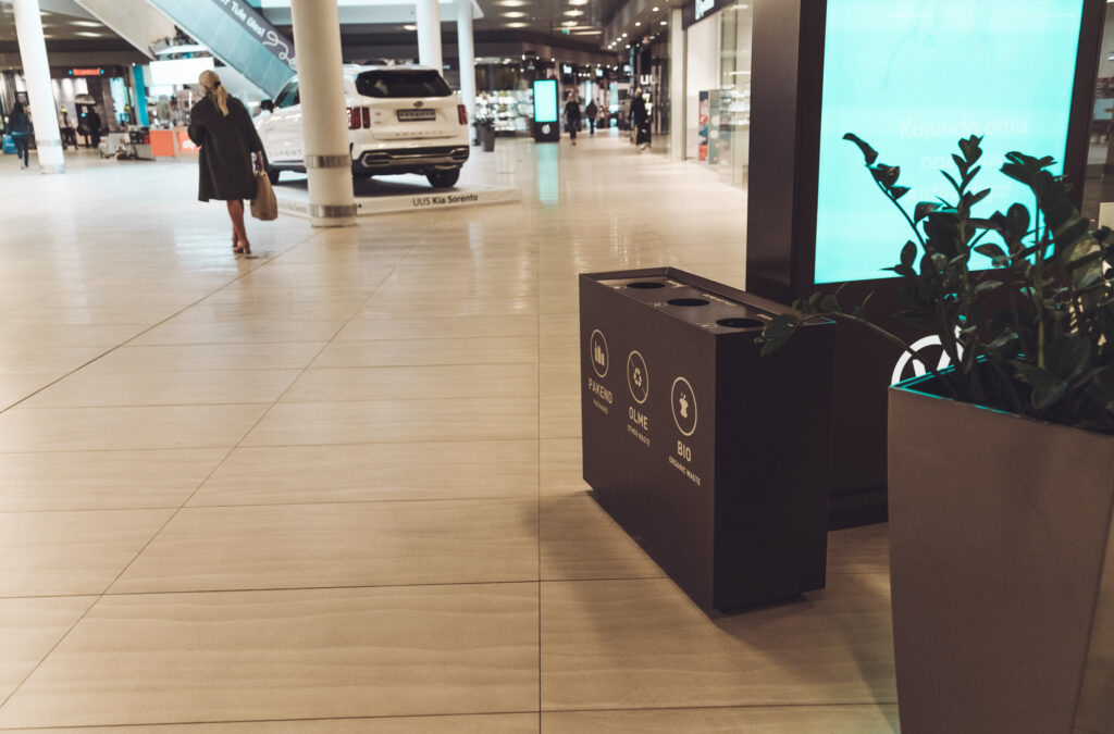 In addition to fashion, beauty, home furnishings, food & drink, the Viims shopping center also has some of our products – both inside and outside. The trash cans are powder-coated in the colors of Viimsi Center, and stickers in the form of text and icons have been added to facilitate the sorting of trash.