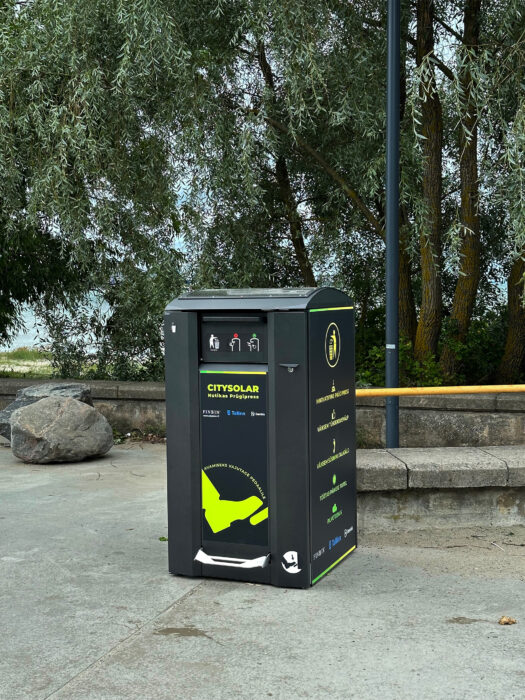 Теперь на Рейди теэ можно встретить мусорную урну CitySolar — новинку в мире сортировки мусора! Урна CitySolar оснащена компрессионным устройством, работающим на солнечной энергии, которое сжимает отходы в 240-литровом контейнере, что позволяет использовать емкость для сбора мусора гораздо эффективнее. Это особенно удобно для таких людных мест, как Рейди теэ. Во многих случаях частота опорожнения контейнера может быть сокращена примерно в 5-10 раз. CitySolar совместима с мобильным приложением. Finbin®Care, или Track It Simple, — это приложение, разработанное для обслуживания улиц и парков. Система отправляет уведомления о необходимости опорожнения урны и даже собирает статистику, например, сколько раз ее открывали в течение дня.